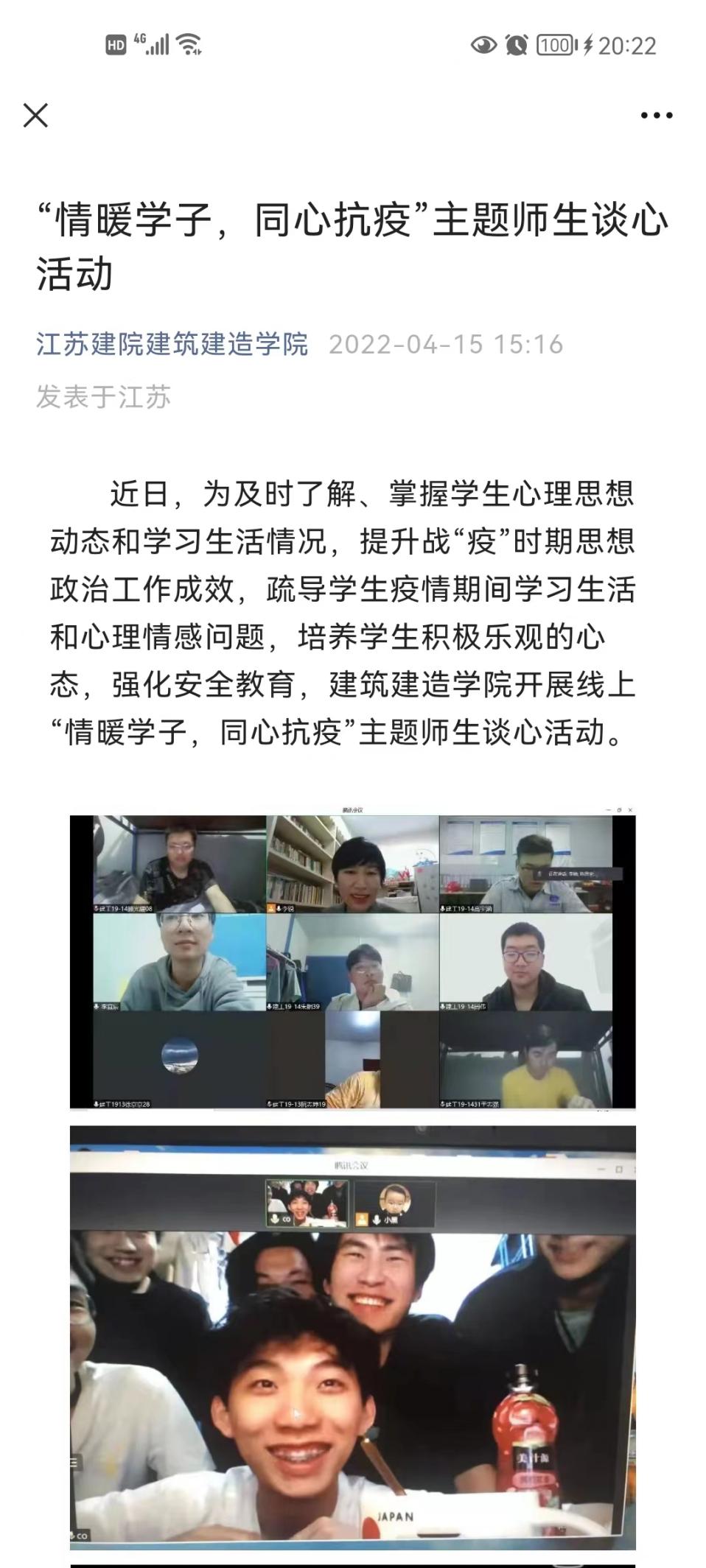 贴心呵护,心理陪伴。根据封校初期学生不适应、吐槽多等阶段性特征,她组织“共抗疫情,你我同行”线上主题班会大课,向同学们介绍徐州市疫情防控局面、uwin电竞疫情防控工作情况、疫情防控期间校园管理规定、学生在校(居家/集中隔离)学习生活健康指南,从疫情期间心理健康关怀、校园生活温馨提醒、防范电信网络诈骗等方面给同学们做细致讲解,增强同学们的疫情防护意识,坚定大家战胜疫情的信心和决心。
